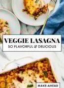 This lasagna is based on my spinach artichoke lasagna on the blog and the roasted eggplant lasagna in my cookbook. I love those less-conventional vegetarian lasagnas.