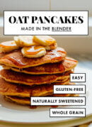 This oatmeal pancake recipe is super easy to make in the blender! These healthy pancakes are perfect for busy mornings. They’re whole grain and gluten-free. Recipe yields 12 pancakes, enough for 4 servings.