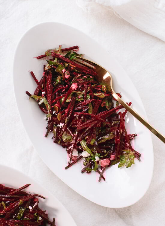 *Beet notes: Raw beets are great and offer some crispness to the salad. If you’re skeptical, you could substitute thinly sliced roasted beets or store-bought cooked beets, such as Love Beets brand,